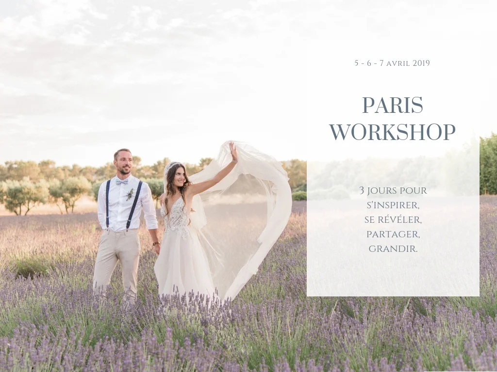 Un workshop, ce n’est pas seulement créer de jolies images pour son portfolio. C’est également trouver sa voie, affiner sa vision et se révéler. Pour cela, il faut parfois déconstruire nos idées reçues, nos pensées limitantes, dépasser les barrières que l’on s’impose inconsciemment et sortir de sa zone de confort. Pendant ces 3 jours, vous allez être challengés sur ce que vous pensez être capable d’accomplir et vous repartirez avec des clés qui vous permettront de vous différencier dans un marché que l’on dit « saturé ».